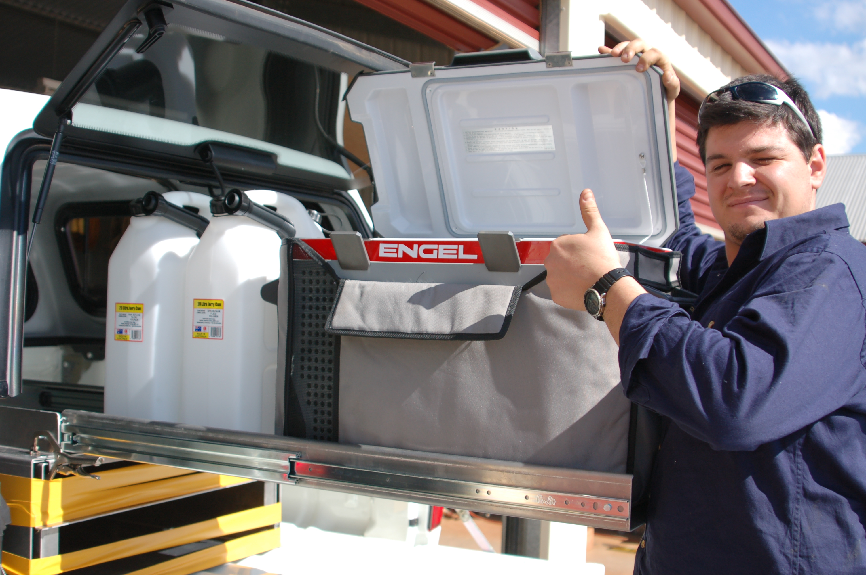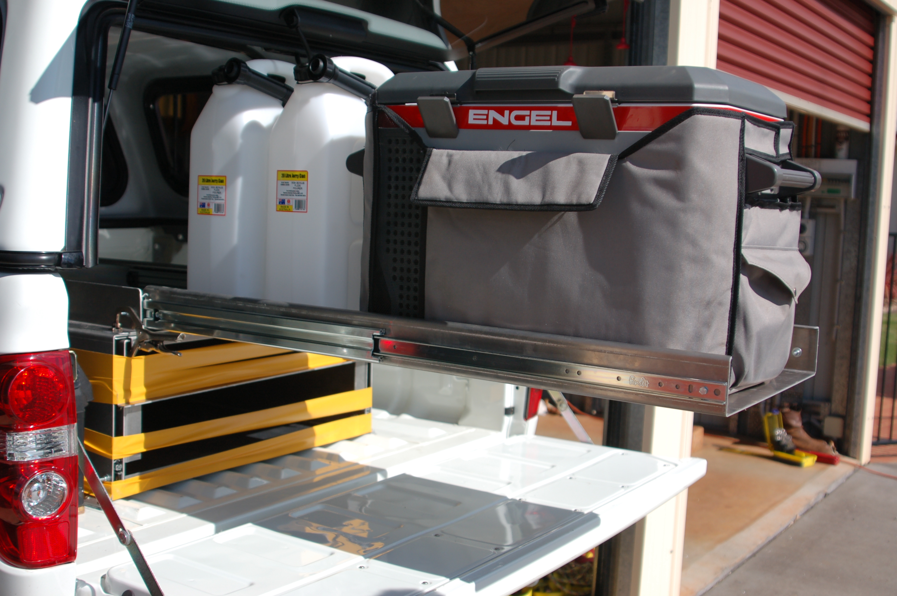 This week our focus has been on getting the storage rig in the back of the Colorado together, still a little bit to go but the fridge slide is now attached. Here are some pictures: