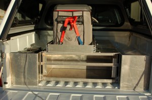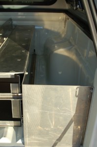 The side storage compartments are going to contain items like folding chairs, shower stand, fishing rods, recovery gear etc.