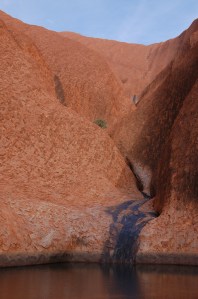 A permanent waterhole at the base of Uluru called Mutitjula Waterhole