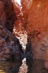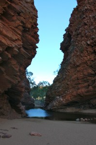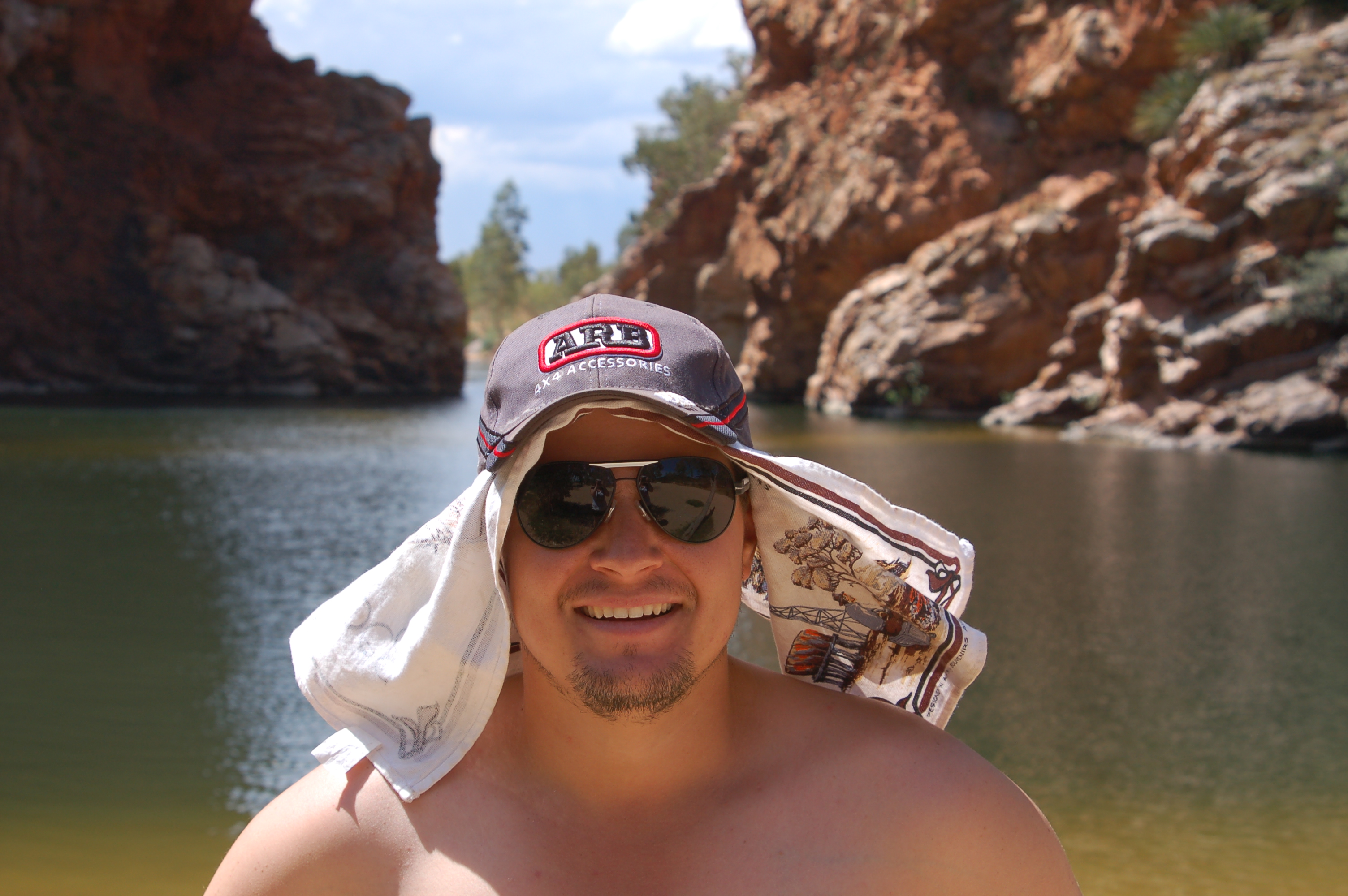 There is no camping at Simpsons Gap so we pressed onto Alice. We had a big couple of days and the car had to get fixed ( A side rail needed repairing from corrugation damage) so we decided to say at a hotel. A nice hotel. After 25 nights in a tent we deserved a little luxury a hot shower, air conditioning and a king size bed. It was lovely. We went out to dinner and Shaun had a mixed grill of the Australian variety – it had camel, kangaroo, crocodile, venizon and buffalo with Native plum chilli sauce. He really enjoyed it. We enjoyed a nice spa amongst the resorts garden. It was a nice, relaxing evening and we are ready to continue on with our journey.