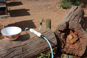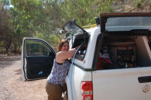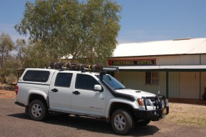 We had a busy day in Alice and didn’t head off to the East Macs until 2pm. We went to the mechanics – warranty issue too big to deal with at the moment so Shaun reefed the bloody things off and sent them to Griffith TNT – we will sort it out later. After organising a new rig to filter water, stopping at hardware store, Clark Rubber, camping store, butcher, groceries, TNT and a quick shop at K-Mart we were all city-ed out. It was time to head bush.