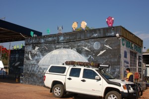 We had no plans of where we were going to sleep that night all we knew was that we needed to be heading North. Once back on the Stuart Highway it was getting late in the day. We passed roadhouse after roadhouse for different reasons. A high hippy behind the bar, the mess around the placec and rundown facilities etc. It was a weird adventure. We eventually stopped at Wycliffe Well, which happens to be the UFO Capital of Australia. Goody more crazies. What town doesn’t have it weirdos right????? Anyway to say the least it was an interesting evening and we were out there early the next morning before we got beamed up.