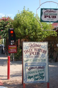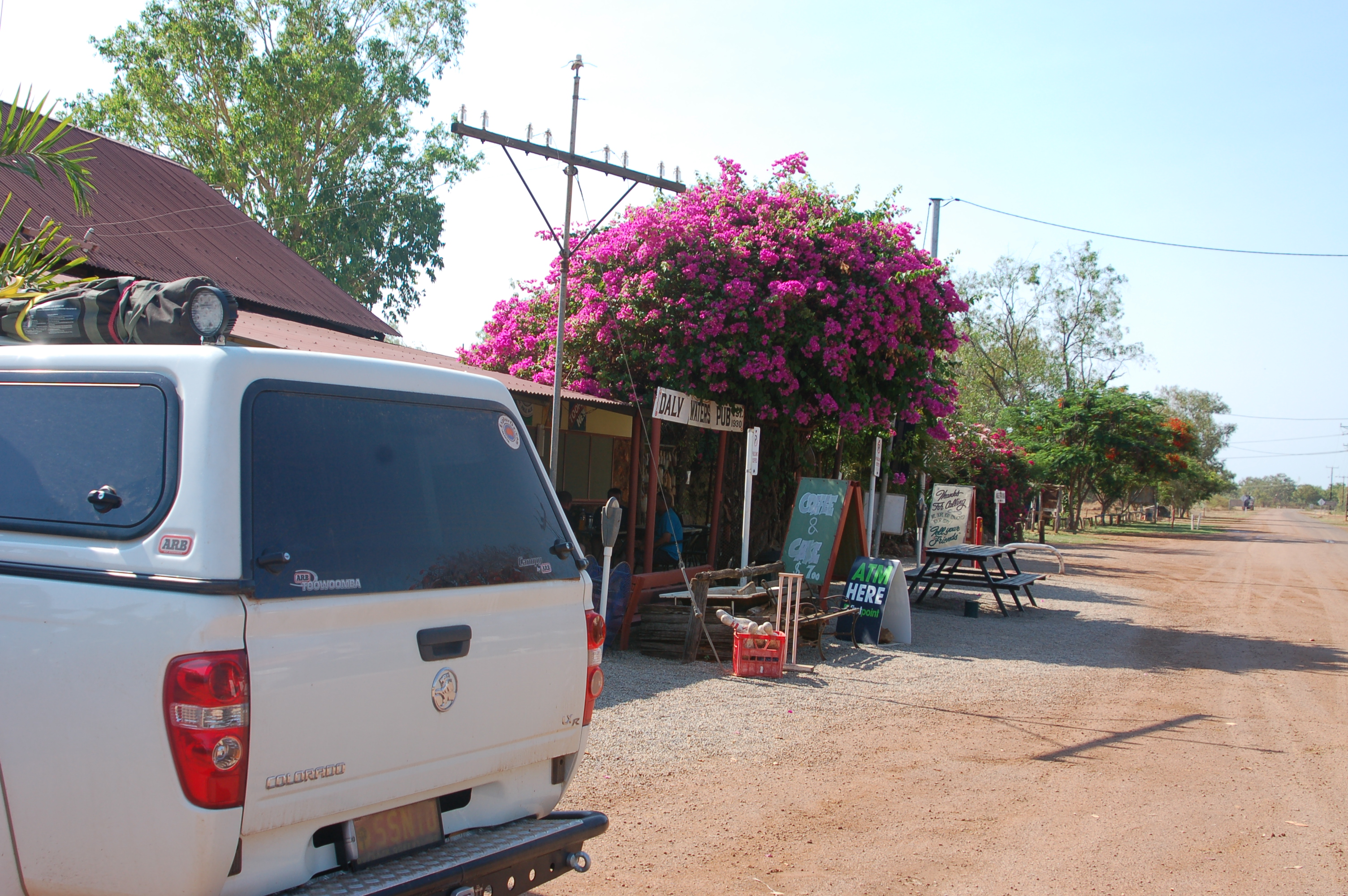 After chatting for an hour or so it was time to hit the road again. We put the foot down and kept pushing on to reach the Historic Daly Waters Pub. We stopped once at Newcastle Waters – a ghost town at the end of Muranji Track. It is well worth stopping.