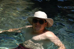 From Larrimah it was straight to Mataranka. For those of you don’t know the Mataranka area was home to Jeannie Gunn, the author of “We of the Never Never” ( if you haven’t read it – READ IT! It is a great piece of Australian Literature) As we came into town we turned off to visit the Elsey Cemetery – where most of the characters from her book are buried including her beloved husband. We also took a quick look at where the original homestead stood. There is a replica here at the Caravan Park where we are staying.