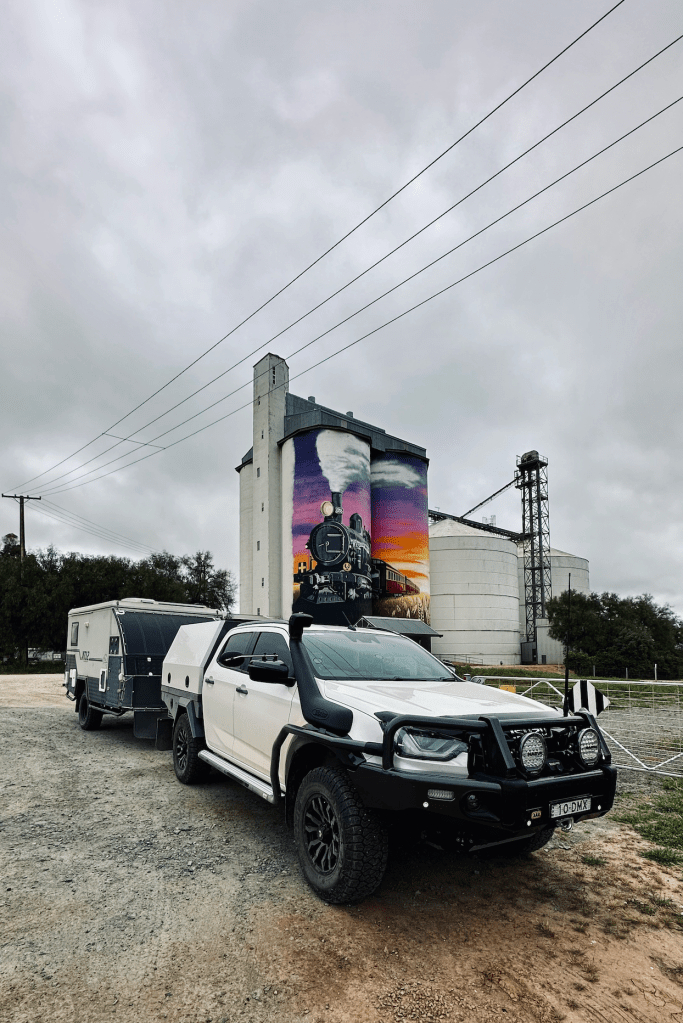 The rain began to fall as we made our way, accompanied by epic winds. Not enough rain to dampen our spirits as we stocked up in Burra, a town we’ve grown to love for its country charm and welcoming locals. A stop at the famous ‘Midnight Oil house’ and a photo op in the almost abandoned township of Terowie broke up the trip.